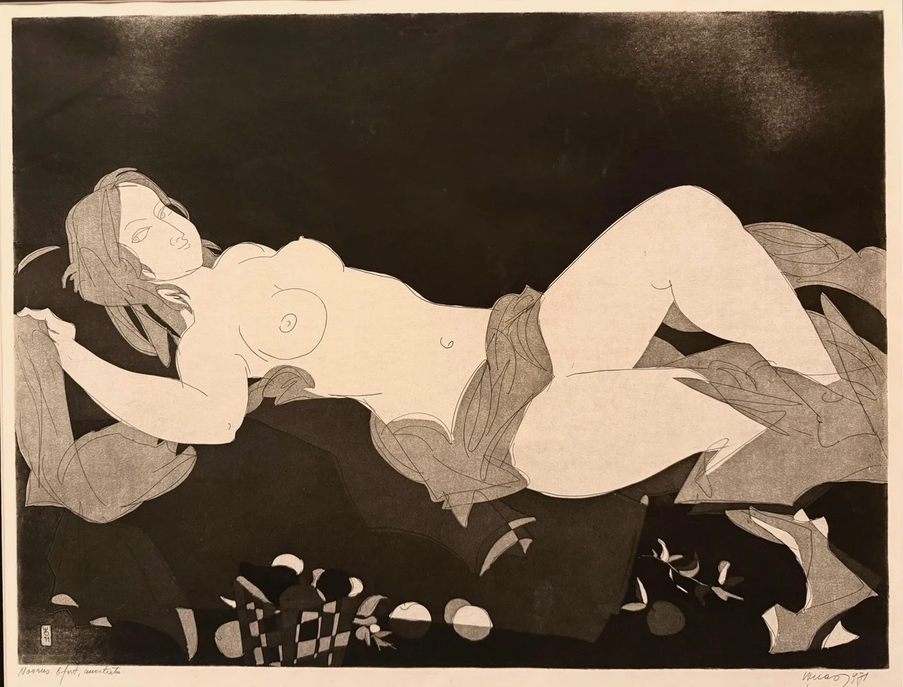 Ofort, akvatinta 1971, signeeritud, raamitud, artklaasiga. Mõõdud koos raamiga 83 x 69 cm.
