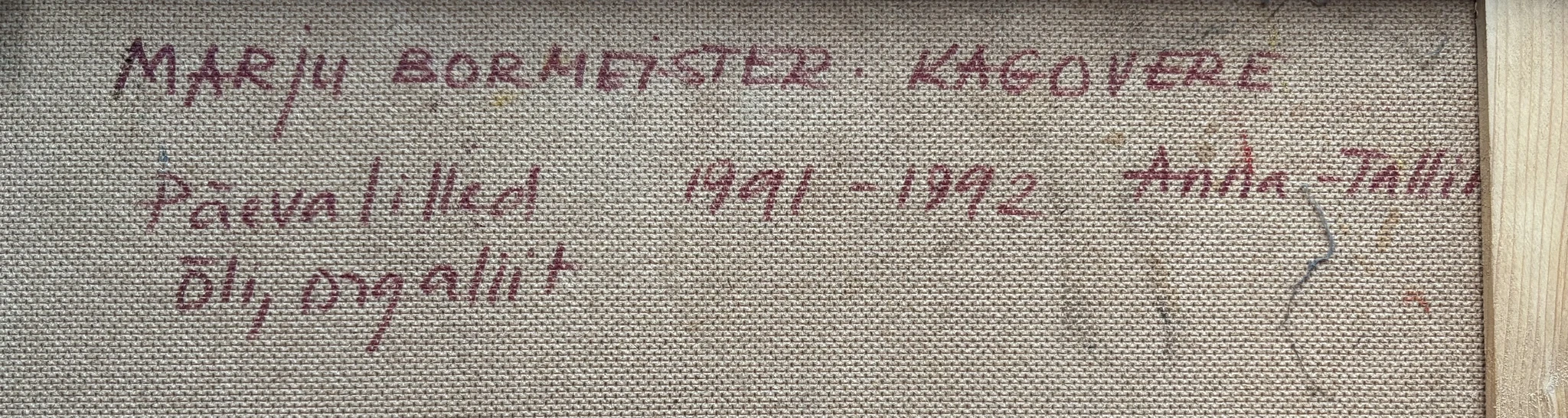 Õli, argaliit 1991-92, raamitud, signeeritud tagaküljel. Pildi mõõdud 49 x 49 cm, raami mõõdud 54 x 54 cm.