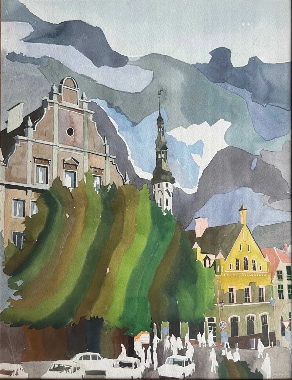 Akvarell 1983, signeeritud ja raamitud. Ava mõõdud 34,5 x 45 cm, mõõdud koos raamiga 45 x 55 cm.
