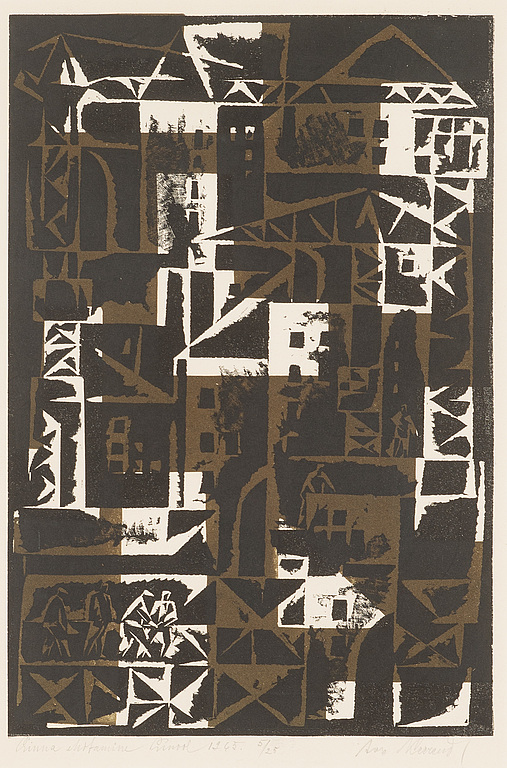 Linoollõige 1965, 5/25. Kujutise mõõdud 30 x 44 cm, raamitud.