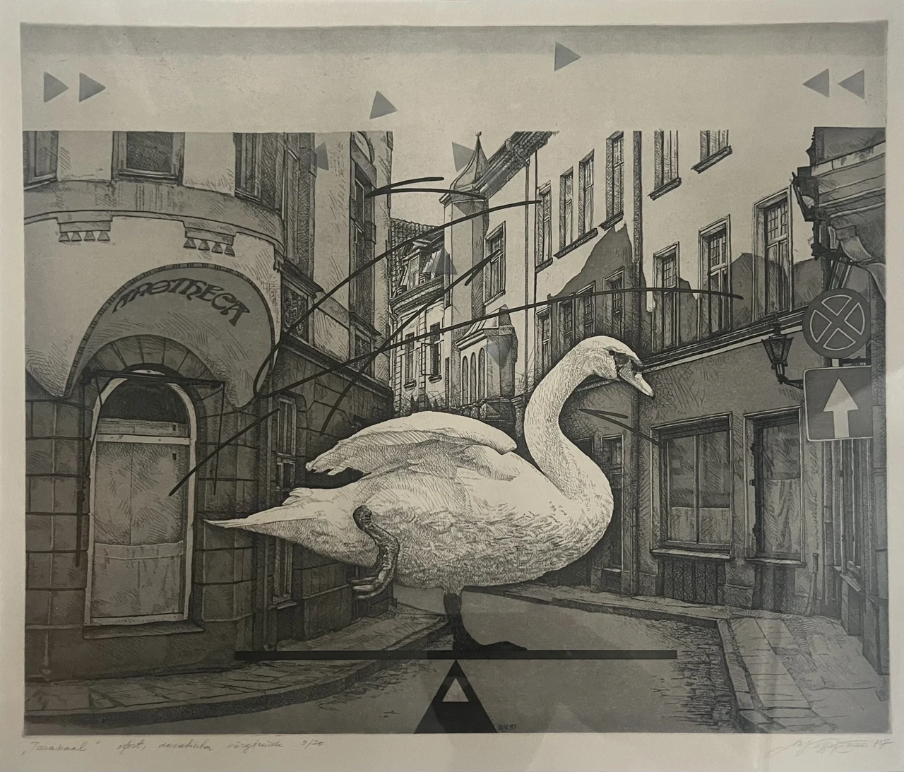Ofort, akvatinta, kõrgtrükk, 1987: Signeeritud, nummerdatud, raamitud. Ava mõõdud 49 x 41 cm.