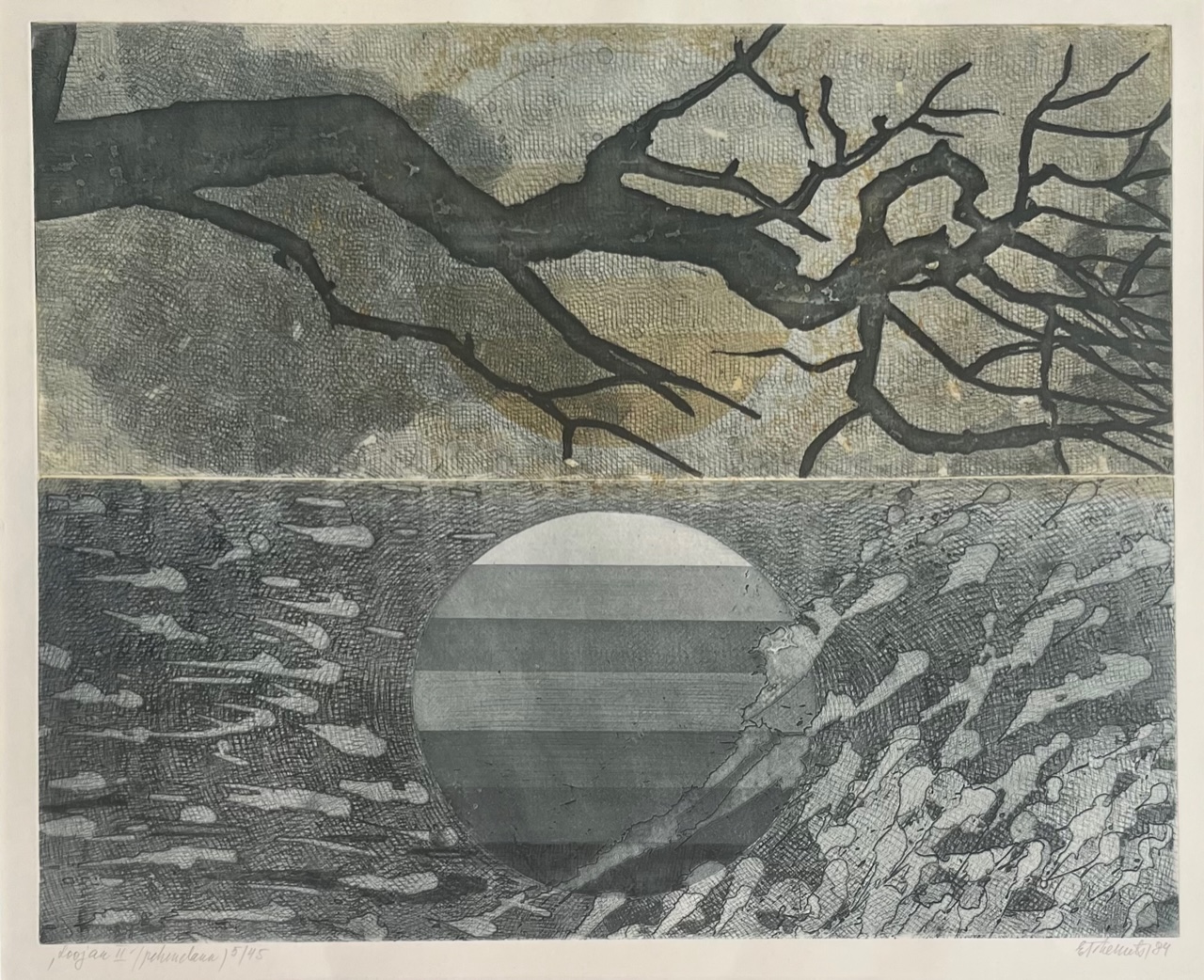 Pehmelakk 1984, 5/45. Raamitud, signeeritud, ava mõõdud 62 x 51 cm.