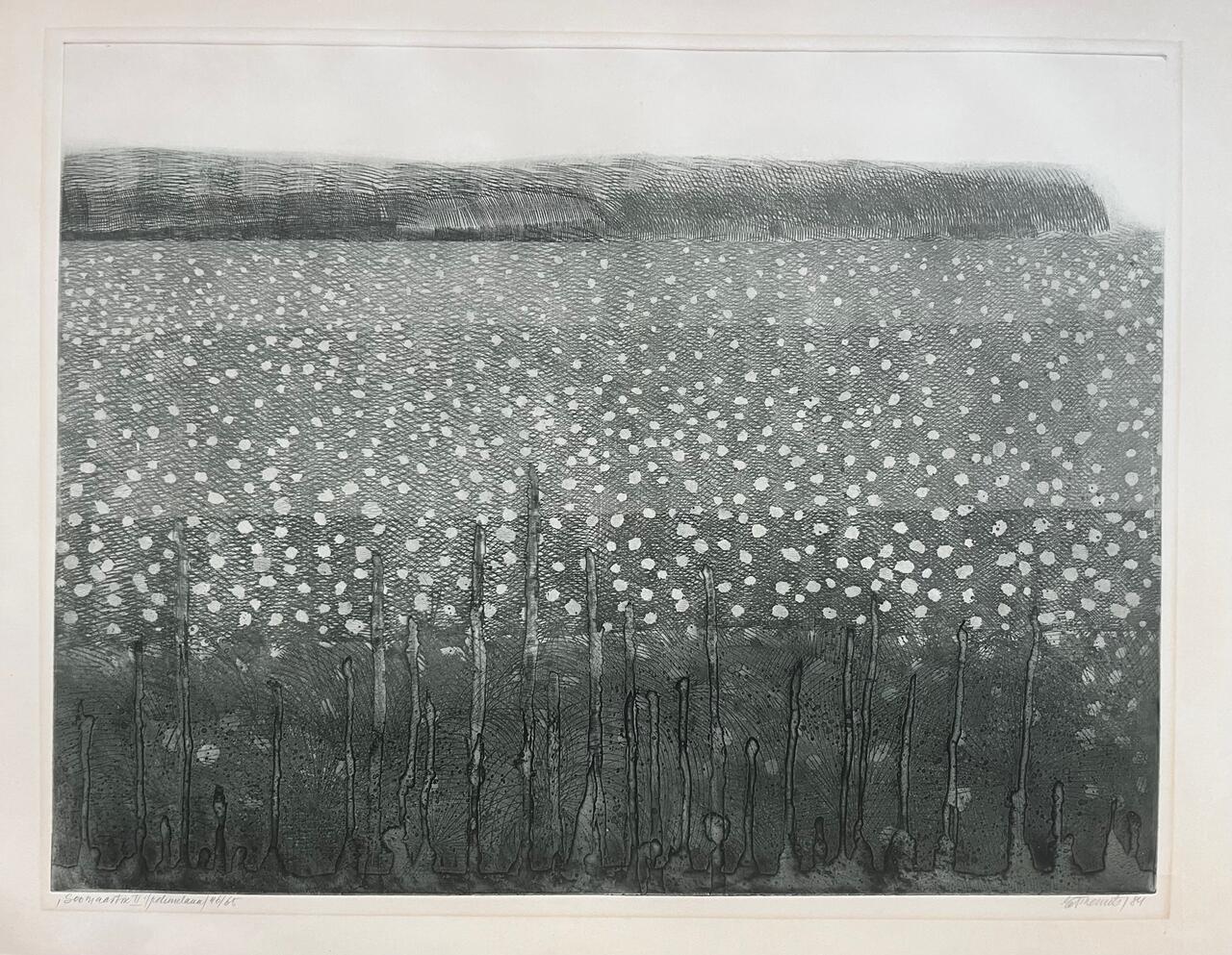 Pehmelakk 1984, 46/65. Kujutise mõõdud 65 x 50 cm, raamitud.