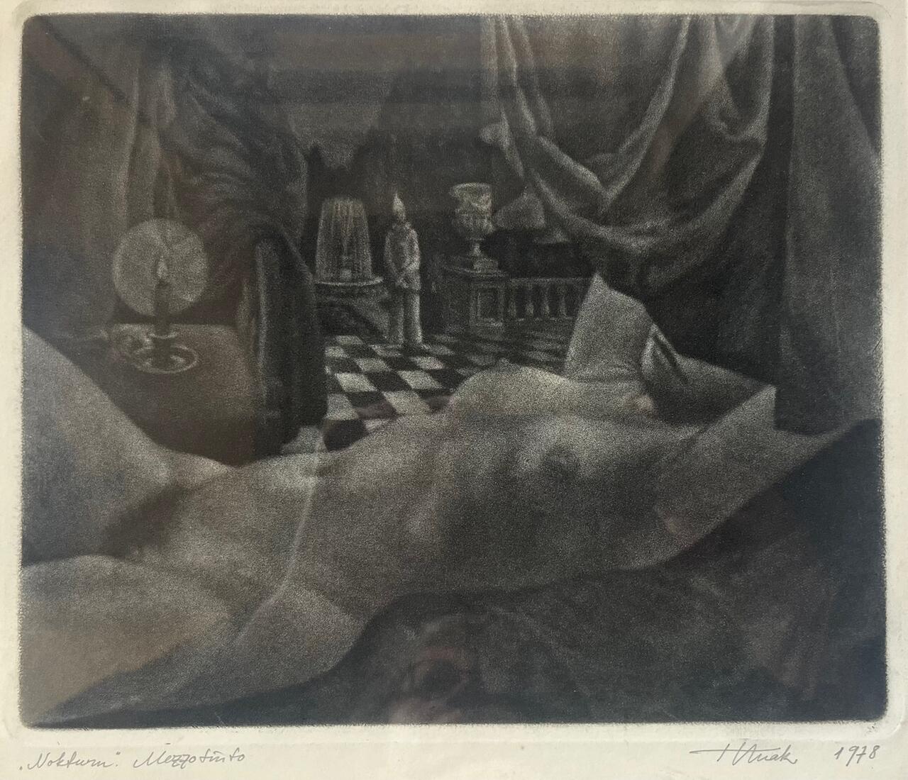 Mezzotinto 1978, signeeritud, raamitud. Ava mõõdud 24 x 29 cm.