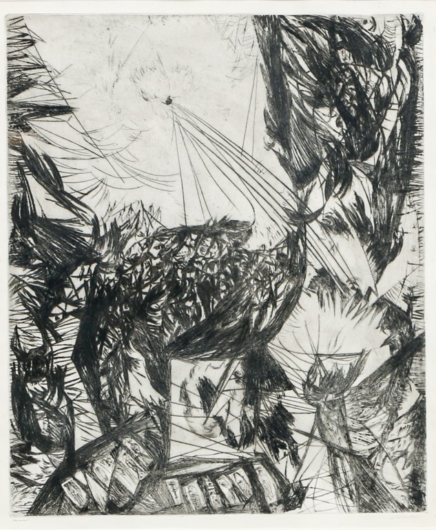 Kuivnõel 80-ndad, proovitrükk, raamitud, signeeritud. Kujutise mõõdud 44 x 37 cm.