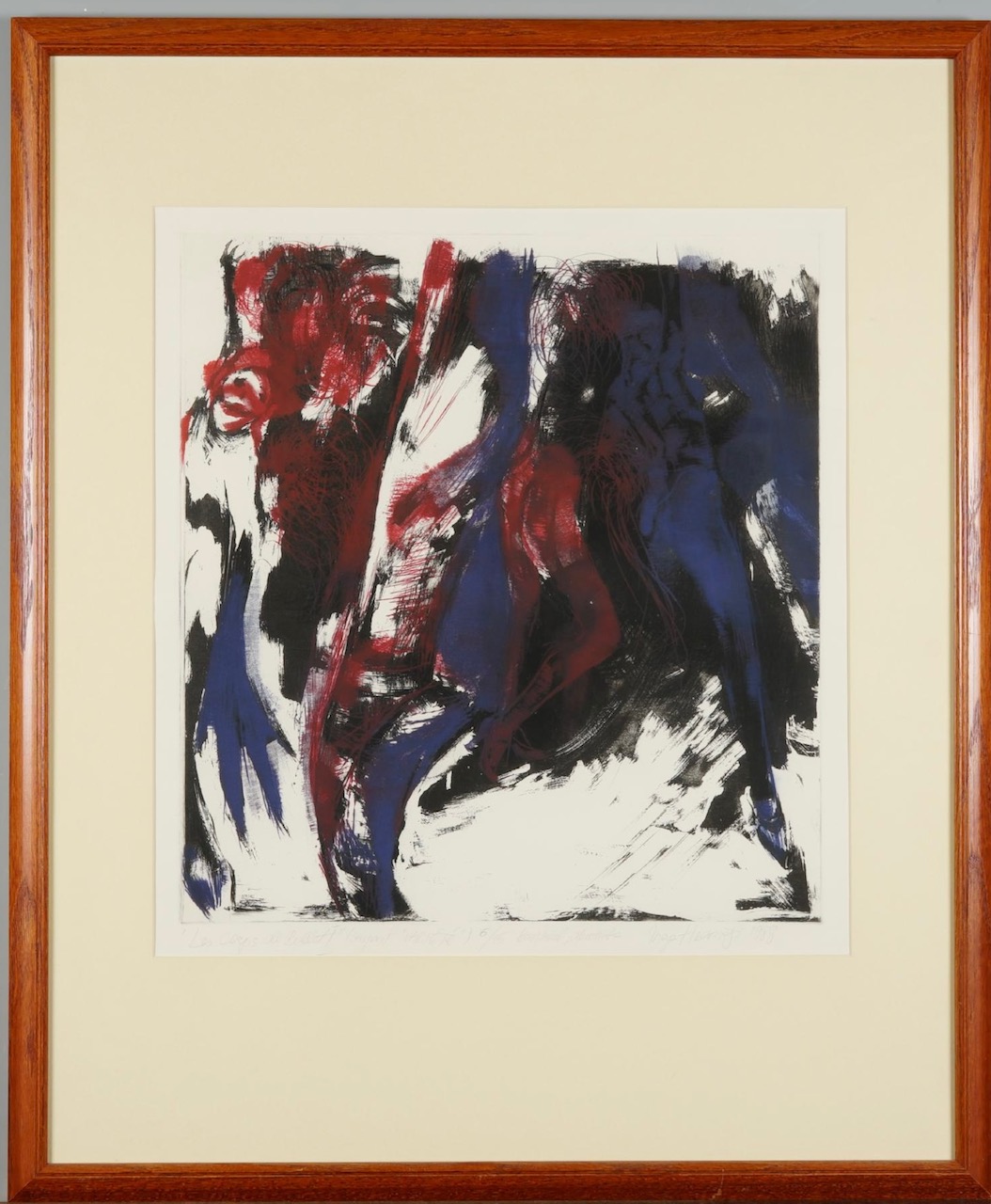 "Les Corps de Ballet I" sarjast "Variete", kuivnõel, akvatinta 1988 6/15. Ava mõõdud 52 x 57 cm, raamitud.