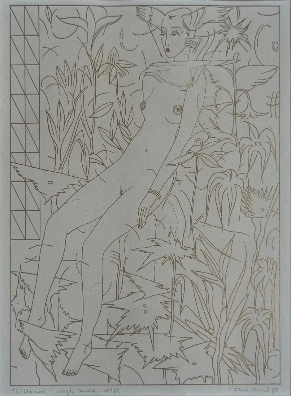 Kõrgtrükk, kuld 1985, nummerdatud, signeeritud, raamitud. Ava mõõdud 20 x 27 cm.