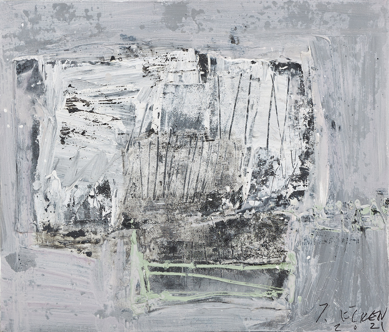 Akrüül, kollaaž/lõuend 2021, raamitud. 70 x 60 cm.