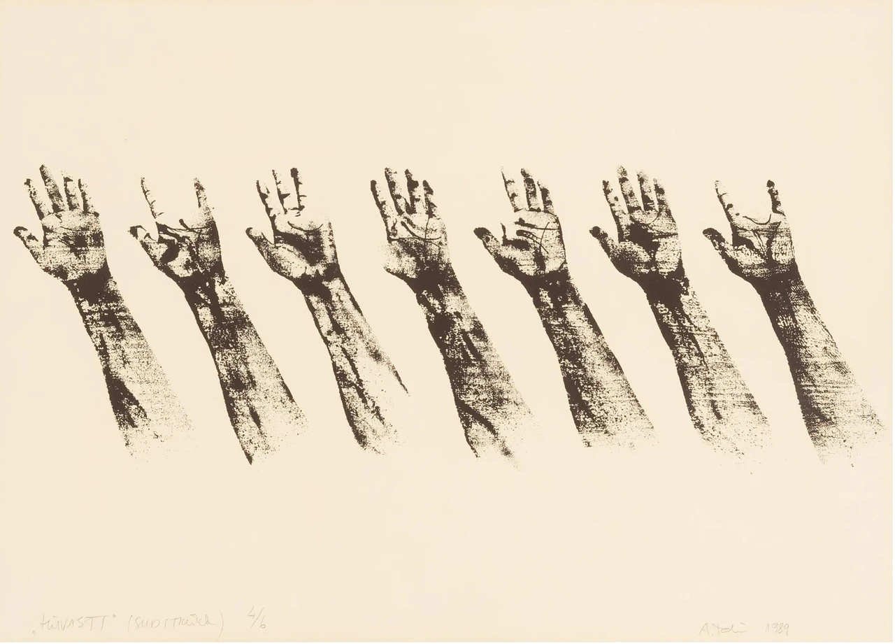 Siiditrükk 1987, signeeritud, nummerdatud 4/6, raamitud. Ava mõõdud 61 x 45 cm, mõõdud koos raamiga 72 x 71 cm.