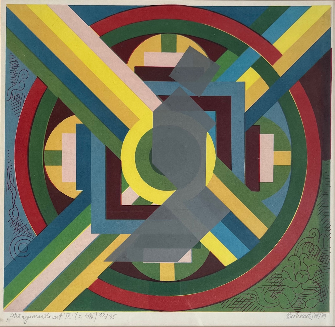 Värviline lito 1978/79, signeeritud, nummerdatud, raamitud. Kujutise mõõdud 34 x 36 cm, raami mõõdud 51 x 66 cm.