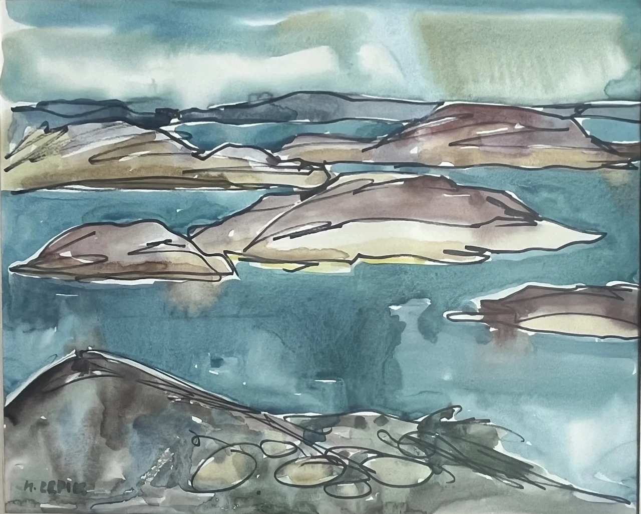 Akvarell, raamitud ja signeeritud. Ava mõõdud 33 x 26 cm.