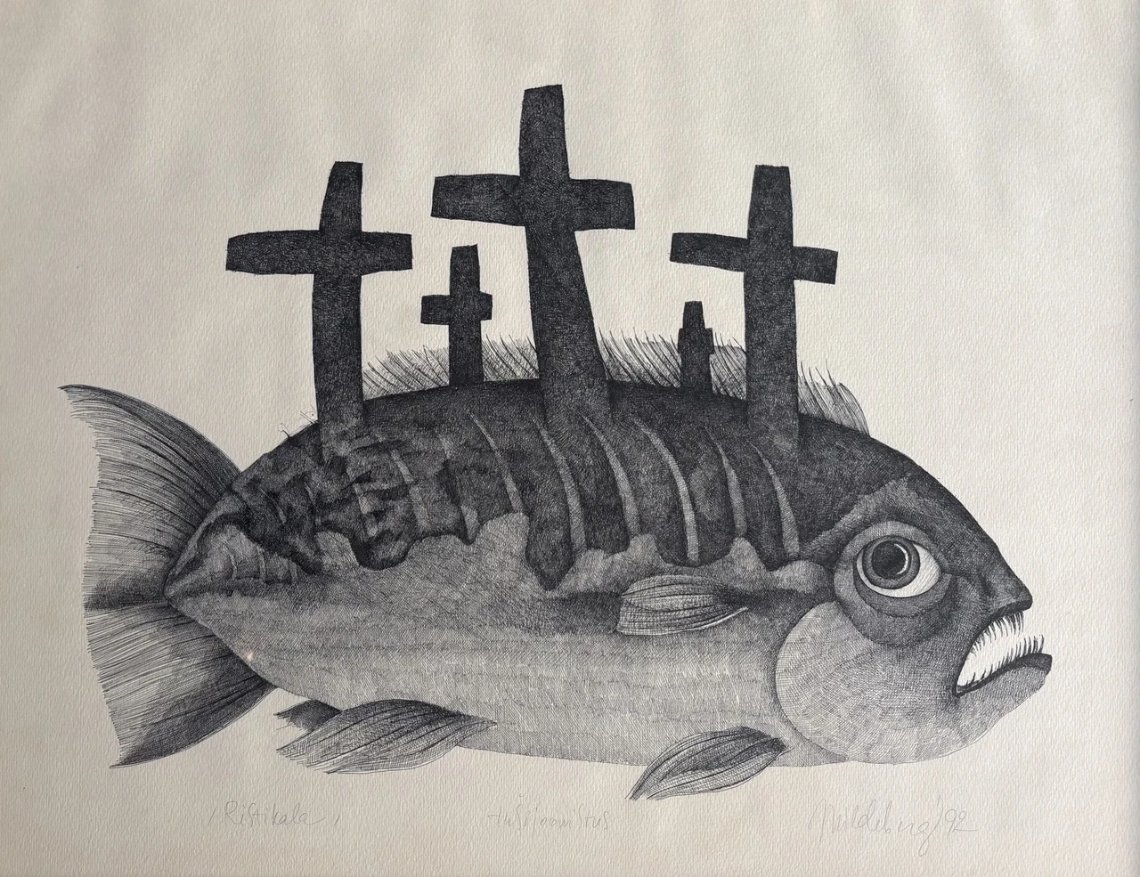Tušijoonistus 1992, mõõdud koos raamiga 67 x 53 cm.