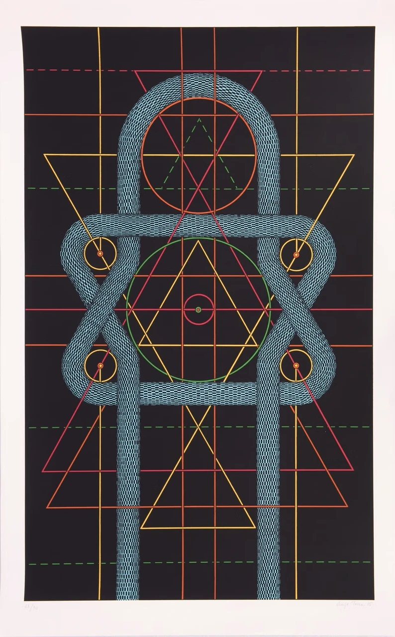 Serigraafia 1985, nummerdatud 23/90, raamimata. Lehe mõõdud 75 x 120 cm.