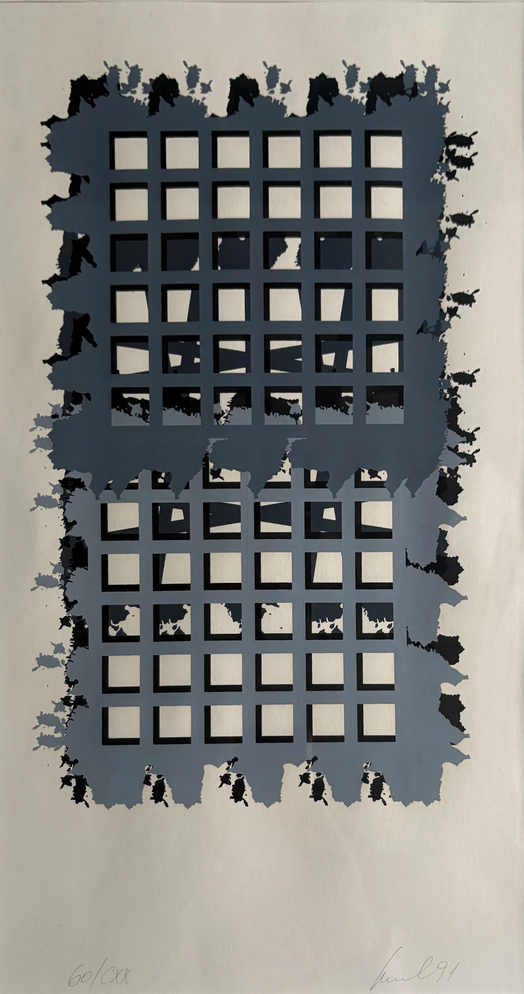 Serigraafia seeriast "Aknad ja maastikud" 1991. Signeeritud, nummerdatud, raamitud. Ava mõõdud 25 x 46 cm, raami mõõdud 41 x 63 cm.